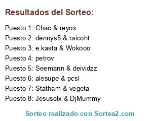 Lista de participantes: Seemann & deividzz, Chac & reyox, e.kasta & Wokooo, Statham & vegeta, Jesuselx & DjMummy, alesupe & pcsl, dennys5 & raicoht, petrov.