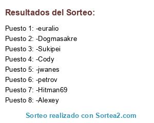 Lista de participantes: -Alexey, -jwanes, -Cody, -Sukipei, -Dogmasakre, -euralio, -Hitman69, -petrov.