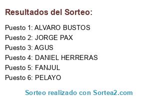 Lista de participantes: DANIEL HERRERAS, ALVARO BUSTOS, JORGE PAX, AGUS, PELAYO, FANJUL.
