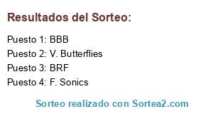 Lista de participantes: V. Butterflies, F. Sonics, BRF, BBB, .