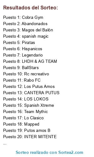 Lista de participantes: Team Mythic, Los Putus Amos, Rabo FC, Cobra Gym, LHDH & AG TEAM, Hispanicos, CANTERA PUTUS, Lo Clasico, Mapped, TeAm GaLaXyzZ, Magos del Balón, Rc recreativo, Eclipse, LOS LOKOS, INTER MITENTE, Piratas, Spanish Xtreme, spanish magic, los hispanos cf, Punto pelota, I FreeStylers I, BallStars, Legendario, Putos amos B, La rata humana, Abandonados.