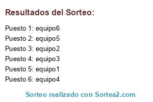 Lista de participantes: equipo1, equipo2, equipo3, equipo4, equipo5, equipo6.