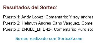 - Ganador 1: Andy Lopez. Comentario: Y soy andrea😄