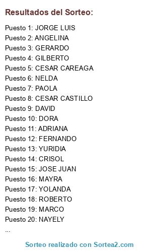 Resultados del sorteo: