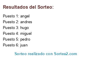 Lista de participantes: juan, pedro, hugo, miguel, andres, angel.