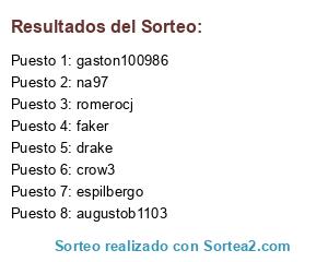 Lista de participantes: na97, gaston100986, augustob1103, crow3, espilbergo, romerocj, faker, drake.