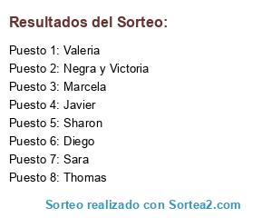 Lista de participantes: Valeria, Diego, Sara, Thomas, Marcela, Javier, Negra y Victoria, Sharon.