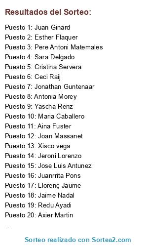 Lista de participantes: Miquel Alzina, Juan Ginard, Mica Uria, Beni Torres, Jeroni Lorenzo, Jose Maria, Yuly Crespo, Miquel Alcarria, Xisco vega, Ivan Molero, Giuliana Ferone, Ana Maria Lakhouizi, Gori Gil Mir, Antonia Morey, Adria Lorenzo, Llorenç Galmes, Miguel Sureda, Sara Delgado, Maria Caballero, Vanesa Marin, Oliver Cansdale, Xisco Sanso, Julian Mielcarek, Maties Capo, Toni Esteva, Mar Torres, Volkan Moll, Paqui Lopez, Esther Flaquer, Xavi Llull, Lluis Alguacil, Toni Lopez, Ismael Sanchez Ferrera, Sergi Lopez, Cristina Servera, Macarena Cifre, Julio y Fer (Butler), Maria Chinchilla, Llorenç Jaume, Joan Massanet, Joan Massanet Terrassa, Pere Antoni Matemales, Nerea Cabrero, Jordi Danus, Kim Andreu, Neus Trigo, Toni Moll Moreno, Desi Lopez, Juanrrita Pons, Jonathan Guntenaar, Alexander Guntenaar, Toni Garcia, Yascha Renz, Pau Rodriguez, Sergi Schlegel, Redu Ayadi, Sascha Goonesekera, Mari Carmen Garcia, Ivan M Campos Sirer, Sonia Roove, Axier Martin, Jaime Nadal, Jose Luis Antunez, Clara Mestre, Carla Cueto, Aina Fuster, Ceci Raij.