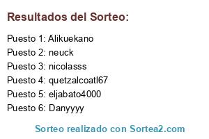 Lista de participantes: Danyyyy, neuck, quetzalcoatl67, nicolasss, Alikuekano, eljabato4000.