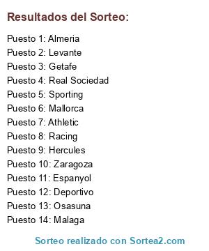 Lista de participantes: Almeria, Athletic, Deportivo, Espanyol, Getafe, Hercules, Levante, Malaga, Mallorca, Osasuna, Racing, Real Sociedad, Sporting, Zaragoza.
