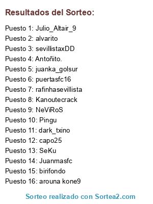 Lista de participantes: alec14387, Facu-mdp, FazcuE, Damian3dg, Diego3dg, Di3nt3, Axolote2906, Belsaga, jpsoad.