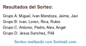 Lista de participantes: Ivan Mendoza, Rica, Antonio, Pedro, Jaime, Jesus Sanchez, Pilili, Rubio, Alex, Angel, Miguel, Ivan, Loren, Javi.