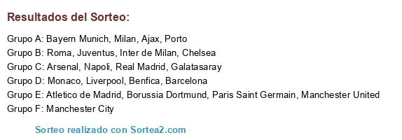 Resultados del sorteo:
