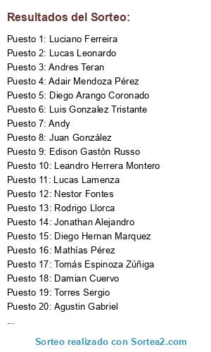 Resultados del sorteo: