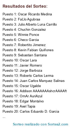Lista de participantes: Winnie Ponce, Roberto Carlos Lerma, Jorge Barboza, Javier Romero, Ángel Fdez, Sebastian Santana, Chuchin Gonzalez, Carlos Eduardo D. Garcia, Alejandro Bardales, Oscar Millan Sanchez, JC Guerrero, Toño Velasco, Addison AAAAAAAshcrAAAAft, Jose Abdias Segura Yedra, Edgar Montalvo, Eduardo Lopez Hernandez, Juan Charrasqueado, Oscar Ricardo Medina, David Garcia, Dani Romero, Erik Jonathan Barker, OmAr AuriAzul, Kevin Fabian Quiñones, Jovanny Cruz, Fam Regalado Rivero, Robertito Jimenez, Jesus Mora, Checo Garcia, Oscar Ugalde, Julio Alberto Luna Carrillo, Zlatko Fifa, Guayabo Laz, Oscar Lara, FaLlo Agubraa, Juanjo Alvarez Mtz, Gerardo Silva, Alan Chavez, Ebed Carrera, Juan Carlos Marquez Salinas, Axel Tapia.