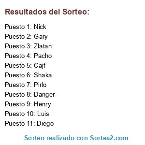 Lista de participantes: Luis, Danger, Gary, Nick, Pacho, Diego, Zlatan, Pirlo, Shaka, Henry, Cajf.