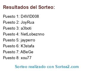 Lista de participantes: ABeGe, D4VID008, NetLobeznno, a3boti, JoyRua, K3stafa, xou77, jayperro.