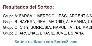 Lista de participantes: REAL MADRID, AT. DE MADRID, FARSA, BAYERN, BORRUSIA, CITY, CHELSEA, JUVE, PSG, LIVERPOOL, NAPOLI, ESPAÑA, BRASIL, ARSENAL, ALEMANIA, ARGENTINA.