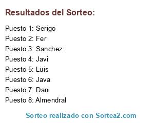 Lista de participantes: Sanchez, Almendral, Javi, Dani, Serigo, Java, Fer, Luis.