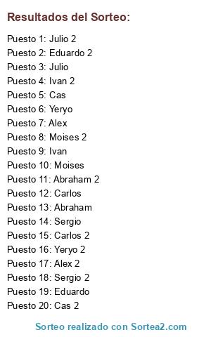 Lista de participantes: Yeryo, Ivan, Sergio, Eduardo, Cas, Moises, Carlos, Abraham, Alex, Julio, Yeryo 2, Ivan 2, Sergio 2, Eduardo 2, Cas 2, Moises 2, Carlos 2, Abraham 2, Alex 2, Julio 2.