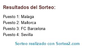 Lista de participantes: Sevilla, FC Barcelona, Mallorca, Malaga.