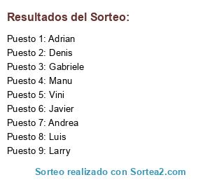 Lista de participantes: Adrian, Javier, Manu, Gabriele, Andrea, Larry, Luis, Vini, Denis.