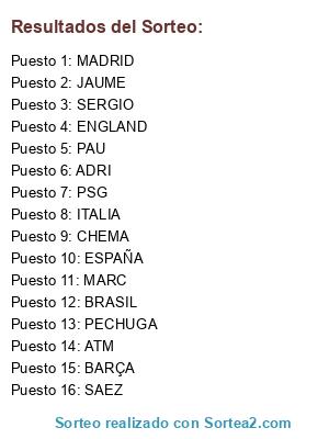 Resultados del sorteo: