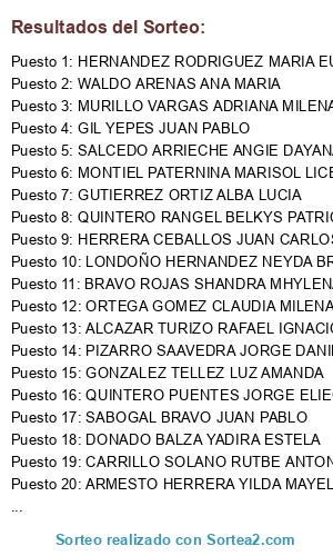 - Puesto 44: MEJIA JIMENEZ ANDREA FRANCHELY