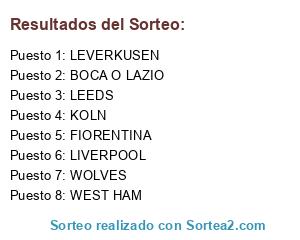 Lista de participantes: WEST HAM, LEVERKUSEN, LEEDS, LIVERPOOL, KOLN, FIORENTINA, WOLVES, BOCA O LAZIO.