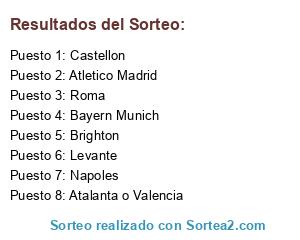 Lista de participantes: Atalanta o Valencia, Atletico Madrid, Bayern Munich, Napoles, Castellon, Levante, Brighton, Roma.
