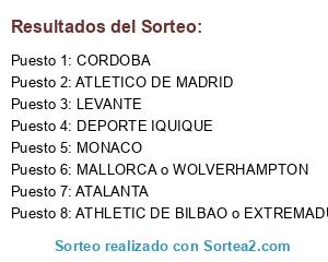 Resultados del sorteo: