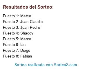 Lista de participantes: Juan Pedro, Juan Claudio, Shaggy, Mateo, Diego, Ian, Marco, Fabian.