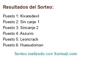 Lista de participantes: Aszurro, Kivaredevil, Huesudoman, Leoncrack, Sin canje 1, Sincanje 2.
