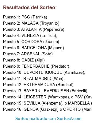 Resultados del sorteo: