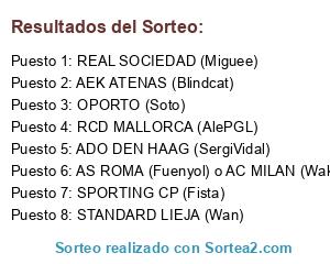 Lista de participantes: ADO DEN HAAG (SergiVidal), REAL SOCIEDAD (Miguee), SPORTING CP (Fista), AEK ATENAS (Blindcat), RCD MALLORCA (AlePGL), OPORTO (Soto), STANDARD LIEJA (Wan), AS ROMA (Fuenyol) o AC MILAN (Wakandu).