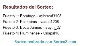 Lista de participantes: Boca Juniors - sayin_27, Botafogo - wilbrand3108, Fluminense - Crispal10, Palmeiras - vasco1208.