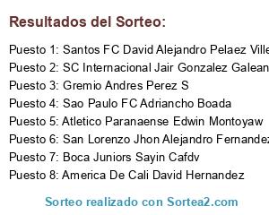 Lista de participantes: Santos FC David Alejandro Pelaez Villegas, Sao Paulo FC Adriancho Boada, SC Internacional Jair Gonzalez Galeano, Atletico Paranaense Edwin Montoyaw, San Lorenzo Jhon Alejandro Fernandez Parra, America De Cali David Hernandez, Boca Juniors Sayin Cafdv, Gremio Andres Perez S.