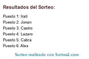 Lista de participantes: Jonan, Lazaro, Irati, Cabra, Alex, Castro.
