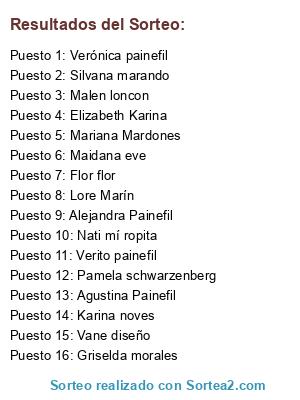 Lista de participantes: Maidana eve, Nati mí ropita, Griselda morales, Vane diseño, Malen loncon, Flor flor, Alejandra Painefil, Silvana marando, Lore Marín, Elizabeth Karina, Karina noves, Agustina Painefil, Mariana Mardones, Verito painefil, Pamela schwarzenberg, Verónica painefil.