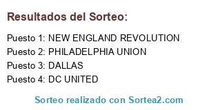 Lista de participantes: NEW ENGLAND REVOLUTION, PHILADELPHIA UNION, DC UNITED, DALLAS.
