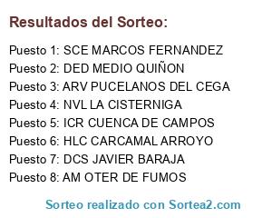Lista de participantes: HLC CARCAMAL ARROYO, HMC CARCAMAL ARROYO, MCB CUENCA DE CAMPOS, APdlP INFIERNO DE ZORRILLA, LMS LA CISTERNIGA, NGC LA GARIMBA, PMA LA PETACA, SCE MARCOS FERNANDEZ, DaPA MENDILIBAR, DFG REAL VALLADOLID EN MADRID, ARV PUCELANOS DEL CEGA, HSMM CALIMERO, ISMM CALIMERO, ILC CARCAMAL, IAM CARCAMAL, HCB CUENCA DE CAMPOS, ICR CUENCA DE CAMPOS, MMM INFIERNO DE ZORRILLA, UML INFIERNO DE ZORRILLA, NGT INFIERNO DE ZORRILLA, MdlRF FLIPANUBLA, RCP FLIPANUBLA, DCS JAVIER BARAJA, ASM LA CISTERNIGA, NVL LA CISTERNIGA, CMB MAGIC PUCELA, DLE MEDIO QUIÑON, DED MEDIO QUIÑON, RLE MEDIO QUIÑON, NPL OTER DE FUMOS, NM OTER DE FUMOS, AM OTER DE FUMOS, AGS ALCAZAREN, PMC ALCAZAREN, HMG ALCAZAREN, MBM ALCAZAREN, AdFC VILLA DE CUELLAR, AAH MARCOS FERNANDEZ, DiPA MENDILIBAR, NRG MENDILIBAR, SBG REAL VALLADOLID EN MADRID, VGG REAL VALLADOLID EN MADRID, ICR VICTOR FERNANDEZ, BLR REAL VALLADOLID EN CORUÑA, DNLP REAL VALLADOLID EN CORUÑA, GPP SENTIMIENTO TRASPINEDO, RDC TERRITORIO PAJARILLOS.