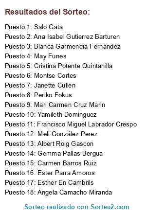 Lista de participantes: Blanca Garmendia Fernández (65 participaciones), May Funes (2 participaciones), Ana Isabel Gutierrez Barturen (60 participaciones), Janette Cullen (14 participaciones), Salo Gata (19 participaciones), Albert Roig Gascon, Montse Cortes (2 participaciones), Periko Fokus (3 participaciones), Mari Carmen Cruz Marin (2 participaciones), Francisco Miguel Labrador Crespo, Cristina Potente Quintanilla (11 participaciones), Meli González Perez, Angela Camacho Miranda, Esther En Cambrils, Gemma Pallas Bergua, Carmen Barros Ruiz (2 participaciones), Ester Parra Amoros, Yamileth Dominguez , Yamileth Dominguez.