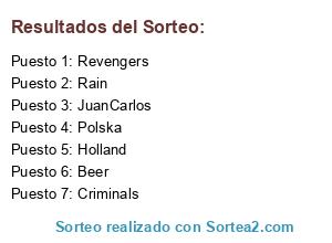 Lista de participantes: Criminals, Beer, Rain, Polska, Holland, Akatsuki, Revengers.