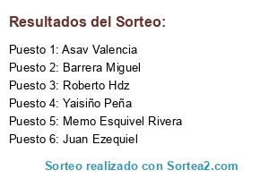 Lista de participantes: Roberto Hdz, Juan Ezequiel, Memo Esquivel Rivera, Barrera Miguel, Yaisiño Peña, Asav Valencia.