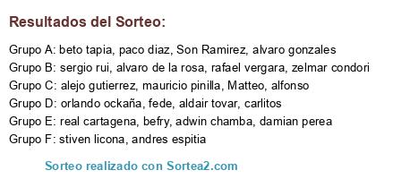 Lista de participantes: Matteo, Son Ramirez, sergio rui, rafael vergara, stiven licona, alejo gutierrez, carlitos, befry, alfonso, fede, adwin chamba, real cartagena, andres espitia, alvaro de la rosa, mauricio pinilla, zelmar condori, beto tapia, orlando ockaña, alvaro gonzales, damian perea, aldair tovar, paco diaz.