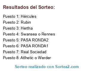 Lista de participantes: Real Sociedad, Hércules, Hertha, Rubin, Atlhetic o Werder, Swansea o Rennes, PASA RONDA1, PASA RONDA2.