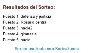 Lista de participantes: defenza y justicia, gimnasia, Rosario central, nadie, nadie2.