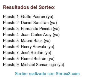 Lista de participantes: Daniel Santillan (ya), José Roldán (ya), Romel Beltrán (ya), Fernando Pineda (ya), Henry Arevalo (ya), Juan Carlos Aray (ya), Guille Padron (ya), Michael Samaniego (ya), Mauro Bauz (ya).