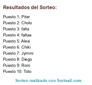Lista de participantes: Chiki, Roro, Toto, Diego, Jymmi, Cholo, Piter , Alesi, falta , faltaa.
