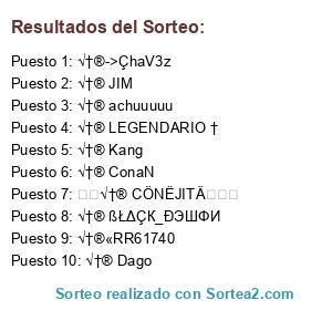 Lista de participantes: √†® ConaN, √†®->ÇhaV3z, √†® JIM, √†® Kang, √†®«RR61740, √†® Dago, √†® LEGENDARIO †, √†® achuuuuu, √†® ߣΔÇК_ÐЭШΦИ, ๑✿√†® CÖNËJITÄ✿๑.